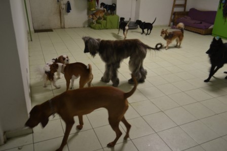 Psíci ve školce od rána pobíhali, vítali se a užívali si společnost.