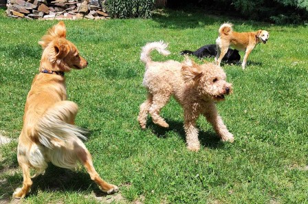 Když se pak k jejich hrátkám připojil i zbytek pejsků, byl nejvyšší čas přesunout zábavu do venkovních prostor...