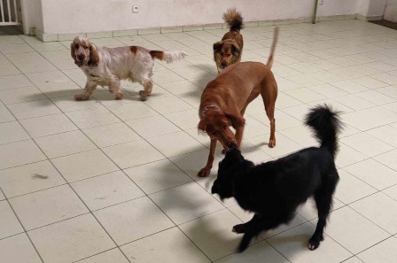 Hampi je na paničku hodně fixovaný, takže během dopoledne pokňourával a kolem ostatních hrajících si pejsků jen opatrně kroužil.