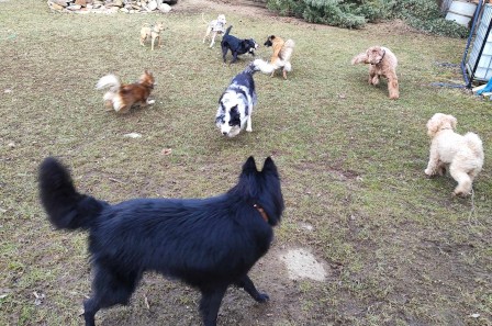 Tam se psiska alespoň trochu rozmělnila a každý si šel po svém... Bagheera s Eliškou a Megginkou se držely spíše stranou, zatímco ti největší výtržníci se doslova vřítili doprostřed dvora.